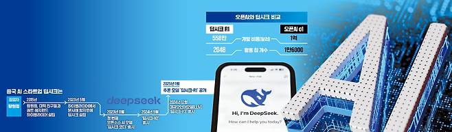 설립된 지 2년도 안 된 중국 인공지능(AI) 스타트업 딥시크(DeepSeek·深度求索)에 관심이 쏠리고 있다. 짧은 시간에 저비용으로 오픈AI의 챗GPT급 AI를 내놓아 미국 월가와 실리콘밸리를 발칵 뒤집어서다. 딥시크에 대한 궁금증을 Q&A 형태로 풀어봤다.
