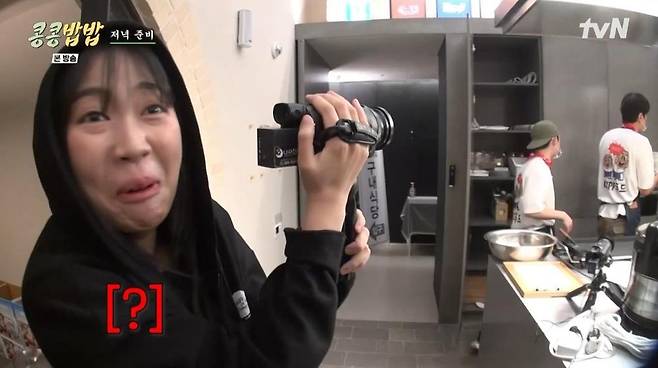 식사 준비에 정신이 팔린 두 사람은 이영지가 코 앞에서 카메라를 들이밀어도 전혀 알아채지 못 했다. 그러다 무심코 카메라를 보고 이영지의 얼굴을 발견한 도경수가 소스라치게 놀라며 그의 정체가 공개됐다.