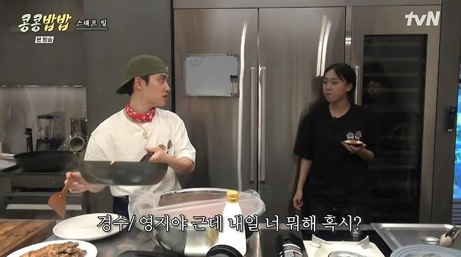 30일 방송된 tvN '콩 심은 데 콩 나고 밥 먹으면 밥심 난다'(이하 '콩콩밥밥')에서는 이광수와 도경수의 구내식당을 찾아 깜짝 카메라를 준비한 이영지의 모습이 그려졌다.
