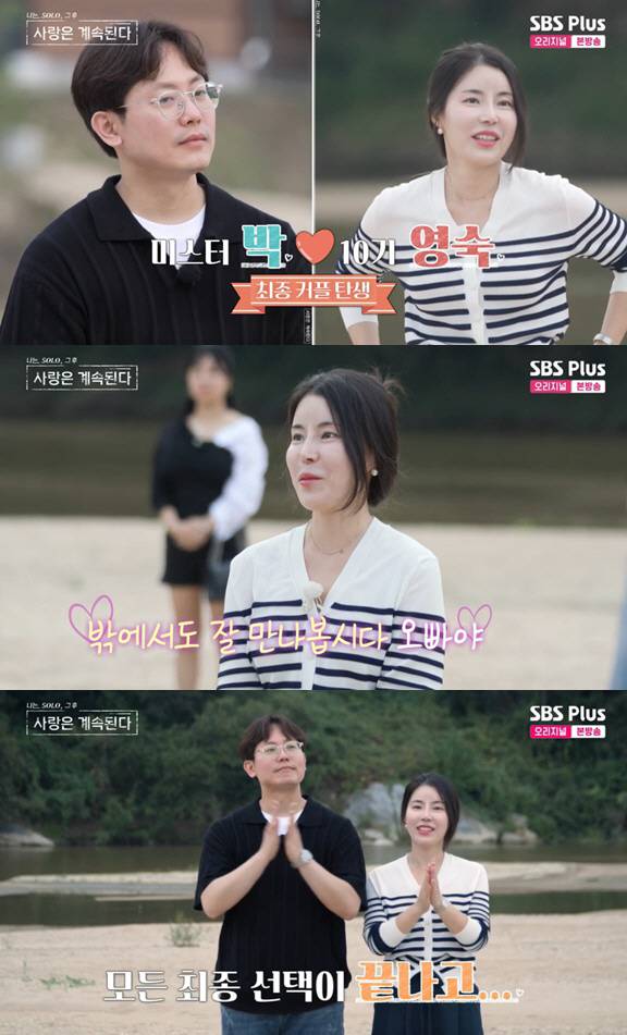 미스터 박은 "10기 영숙님과 최커가 되서 잘 지냈다. 그런데 제가 바쁘고 그러다 보니 왔다갔다 하는게 생각보다 힘들더라. 그래서 저희는 현재 커플은 아닌 상태다"라고 10기 영숙과 현실 커플은 아니라고 밝혔다.