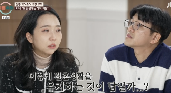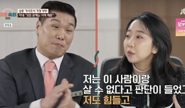 30일 방송된 JTBC 예능 ‘이혼숙려캠프’에서 지난 주에 이어 남편 조승환과 아내 황진주 부부가 그려졌다.