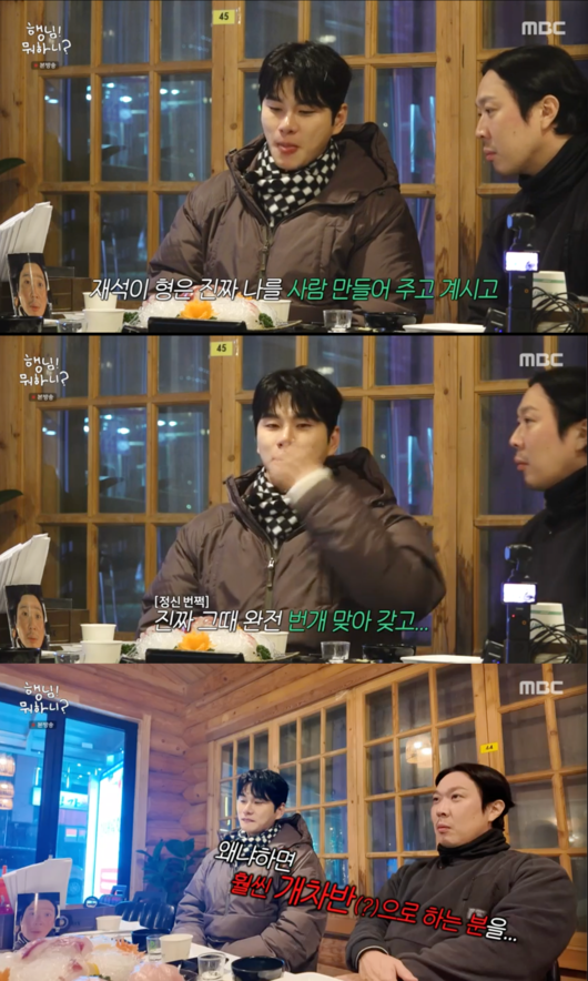 이어 그는 “오케이 내가 잘못했구나 깨닫고 죄송합니다 했다. 재석 형이 ‘너 오늘 큰 웃음 3번, 중간 웃음 10번, 작은 웃음 30번 웃겨’ 했다. 그 뒤로 다시는 목요일 전날 술을 잘 안 마신다. 재석 형이 얼마나 무서웠는지. 형이 화를 내면 눈물이 찔끔찔끔 난다”고 털어놓았다.
