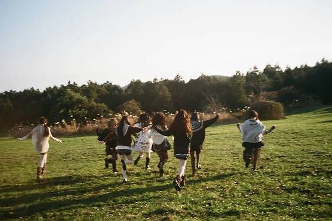 이들의 SNS 계정에는 필름 카메라 감성을 담은 이미지들이 공개됐는데, 두 멤버가 다정히 맞잡은 손, 넓은 들판 위를 달리는 여덟 멤버들의 뒷모습 등이 담겼다.