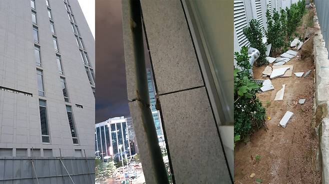 ▲ 경암센터 빌딩 외벽 일부 붕괴로 석재 추락