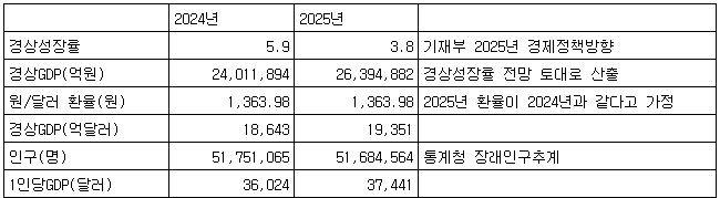 [표] 2024∼2025년 1인당 GDP 추계