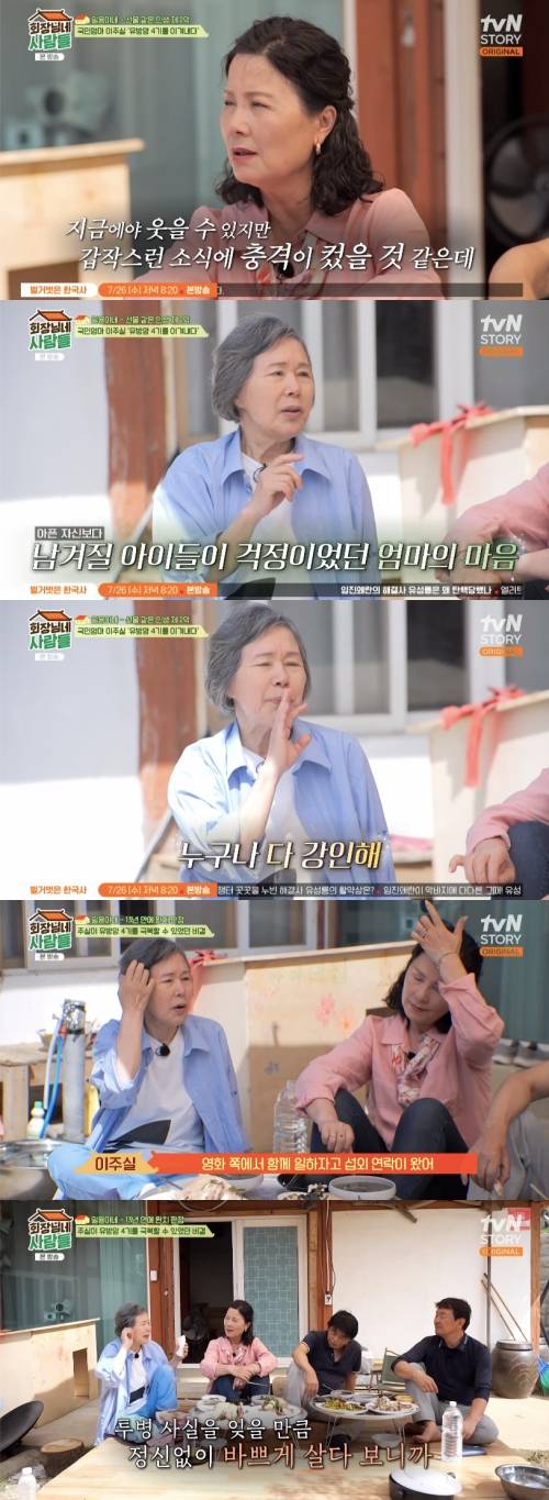 또 투병 중에도 ‘열일’했던 이주실은 “다 놓아버리면 무기력해진다. 영화 쪽에서 일하자고 연락이 온다. 그때 기사가 많이 나가서 ‘나 아프다’ 했더니 '그것은 질병이고 우리는 일이다'라고 하더라. 그런 사고가 감사하다”라고 털어놨다.