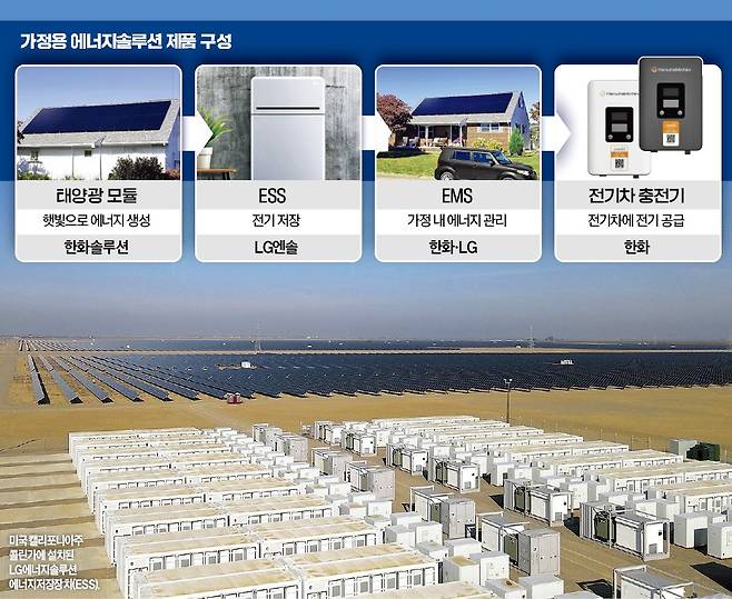 올해 하반기 두 회사는 미국에서 생산하는 한화솔루션의 태양광 모듈, LG에너지솔루션의 ESS에 양사가 공동 개발한 EMS, 한화의 전기차 충전기 등을 통합한 제품을 내놓는다.