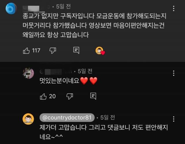 감동적인 사연은 댓글로 이어졌다. ‘종교는 무교지만 시골의사 쌤 같은 기독교인 너무 좋다’ ‘천주교인인데 감동 받고 후원한다’ ‘작은 예수님들이시네요’ ‘강원도 시골에서 목회하는 목사다. 새벽기도회 마치고 틀었는데 눈물 찔끔, 가슴이 따뜻해진다. 마음 다잡고 목회에 힘쓰겠다’ 등 종파를 초월한 반응들이 눈길을 끌었다.