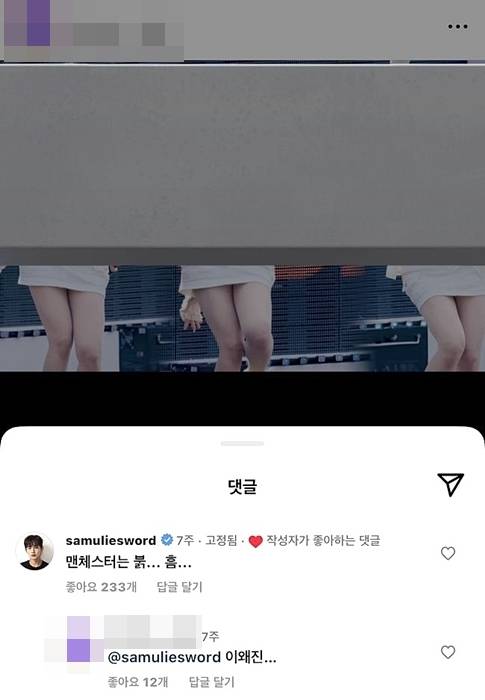 이 때문에 맨체스터 유나이티드(맨유)의 팬으로 유명한 김민석이 맨유의 상징색인 붉은색을 언급하면서 "맨체스터는 붉은색"이라는 의미의 댓글을 남긴 것.
