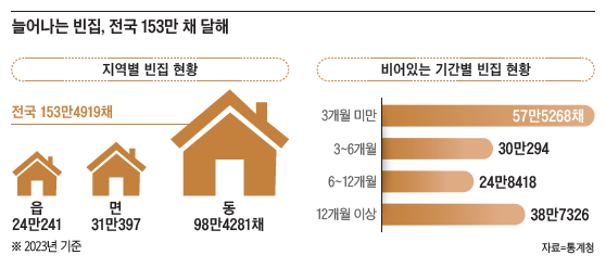 빈집은 비단 부산만의 문제는 아니다. 당장 인구 소멸 속도가 빠른 지방을 중심으로 심화하고 있지만 서울 등 수도권도 안전지대는 아니다. 통계청 주택총조사에 따르면, 전국 곳곳에 빈집이 빠르게 늘어나면서 2023년 전국의 빈집은 153만4919채까지 늘어났다. 1년 이상 사람이 거주하지 않은 주택도 38만7326채에 달한다.