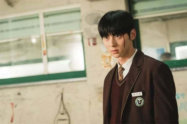 [엔터미디어=정덕현의 네모난 세상] 모두가 대놓고 잠든 교실, 이런 애들 앞에서 수업을 하고 있다는 게 스스로도 한심스럽다며 푸념하는 선생님 앞에 유일하게 필기를 하며 공부하고 있는 인물. 윤가민(황민현)이다. 선생님이 하는 말 한 마디 한 마디를 토씨하나 틀리지 않고 필기하는, 누가 봐도 공부벌레로 보이는 인물이지만 그가 하는 첫 마디는 "믿기 힘들겠지만 난 공부를 못한다"다. 무언가 열심히 푼 듯 빼곡하게 등식이 적혀 있는 시험지지만 연실 빗금이 그어진다.