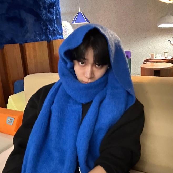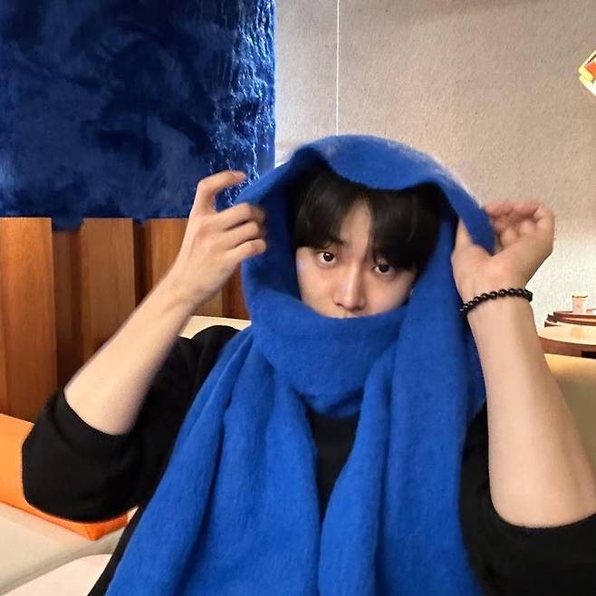 겨울철 패션에서 액세서리는 분위기를 좌우하는 중요한 요소다. 추영우는 과감한 비비드 블루 컬러의 머플러를 활용해 존재감을 더욱 강조했다. 부드러운 촉감이 돋보이는 텍스처와 함께 머플러를 후드처럼 감싼 스타일링은 한층 귀여운 매력을 더했다. 또한 손목에도 블랙 팔찌를 착용해 심플한 포인트를 주어 전체적인 룩에 세련된 마무리를 더했다.