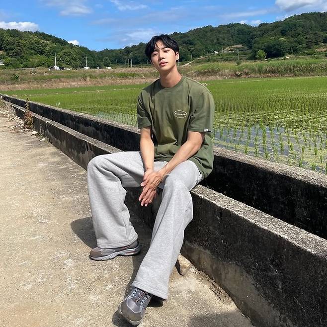 트렌디한 패션도 좋지만, 자연스러운 스타일에서 묻어나는 매력은 또 다른 분위기를 자아낸다. 추영우는 햇살이 따뜻하게 내리쬐는 논밭에서 카키 컬러의 반팔 티셔츠에 회색 트레이닝 팬츠를 매치에 군더더기 없는 심플한 스타일을 선보였다. 여기에 편안한 러닝화를 신어 활동성을 높였다.