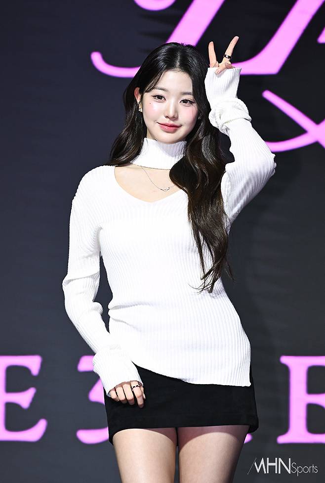 (MHN스포츠 이현지 기자) 그룹 아이브 장원영이 3일 오후 서울 영등포구 콘래드 서울 호텔에서 진행된 세 번째 미니 앨범 '아이브 엠파시(IVE EMPATHY)' 발매 기념 기자간담회에 참석해 포토타임을 갖고 있다.