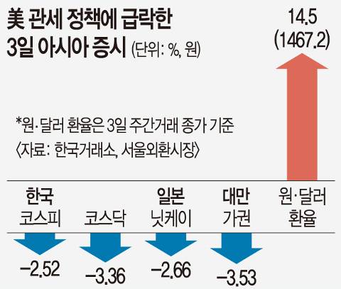 트럼프발 ‘관세전쟁’… 韓증시·환율 덮쳤다