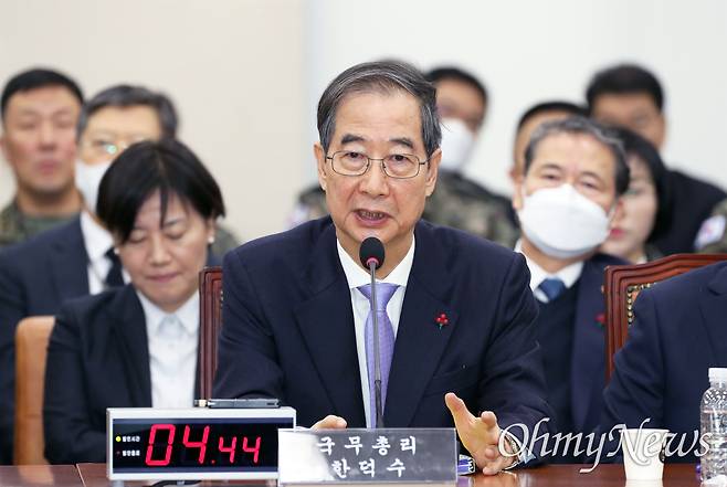 | ▲ 한덕수 국무총리가 1월 22일 오후 서울 여의도 국회에서 열린 '윤석열 정부의 비상계엄 선포를 통한 내란 혐의 진상규명 국정조사 특별위원회' 1차 청문회에 출석해 답변하고 있다. |