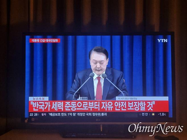 | ▲ 2024년 12월 3일 밤 윤석열 대통령이 서울 용산 대통령실 청사에서 비상계엄을 선포하고 있다. |