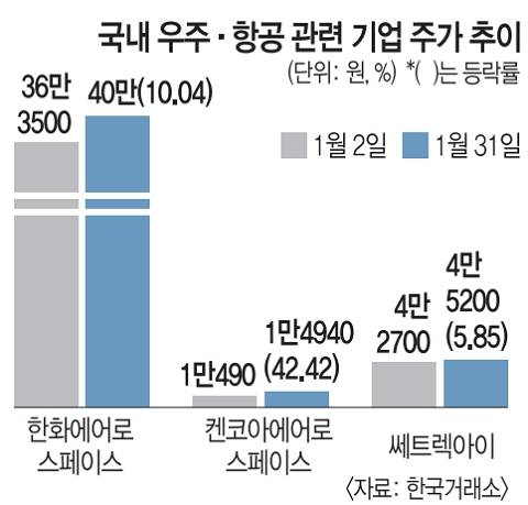 국내 우주·항공 기업, 올들어 줄줄이 강세