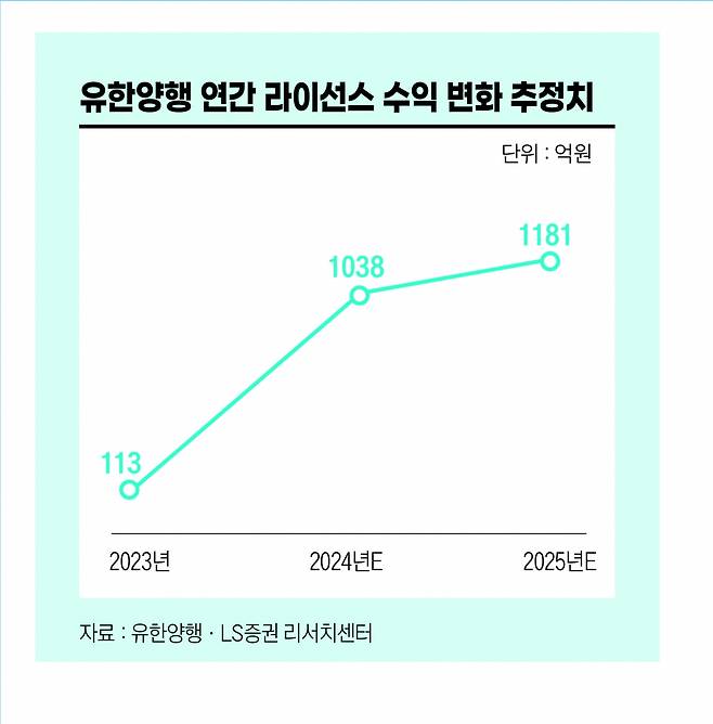 2018년 글로벌 빅파마 존슨앤드존슨(J&J)에 ‘라이선싱 아웃’ 했던 비소세포폐암 치료제 ‘렉라자’(성분명 레이저티닙)가 지난해 국산 항암신약으로선 처음으로 미국 식품의약국(FDA)으로부터 1차 치료제로서 허가를 받았기 때문이다. 2024년 9월 J&J 자회사인 얀센바이오테크로부터 수령한 마일스톤 6000만 달러(약 800억원)는 유한양행의 수익성을 올리는 데 한몫했다.
