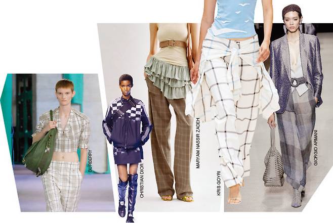 유행에 구애받지 않는 체크 패턴은 사계절 내내 유용하지만 특히 봄, 가을 간절기엔 매일같이 손이 가는 아이템이다. 포멀한 룩엔 격식을 덜어주는 요소로, 캐주얼한 룩엔 포인트를 더하는 것이 바로 체크의 힘. 이번 시즌엔 드뮤어 트렌드의 영향으로 차분한 모노톤 체크가 런웨이에 이어졌다. 체크의 정수 버버리는 아이보리, 베이지 위주의 컬러 팔레트로 분위기를 이어갔고, 조르지오아르마니는 재킷과 베스트에 블록 체크 팬츠로 리듬감을 줬다. 슬리브리스 톱에 넉넉한 체크 팬츠로 활기를 부여한 마리암나시르자데와 크리스고이리, 블랙 & 화이트의 블루 체크 재킷과 팬츠 셋업으로 룩에 악센트를 더한 크리스찬디올도 눈여겨볼 만하다.
