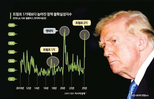 미국의 고율관세 정책은 한국 경제 전반에도 하방 압력으로 작용할 전망이다. 문다운 연구원은 "아직 한국을 직접 겨냥한 정책이 공개된 것은 아니나 보편관세 도입 및 고율 관세 장기화 가능성 배제하기 어려워졌다"며 단기적으로는 환율 등 금융시장 변동성 확대, 중장기적으로는 글로벌 교역 및 대미수출 축소에 따른 수출 물량 감소를 우려했다. 이러한 양상은 앞서 트럼프 1기 당시에도 확인된 바 있다. 그는 "모두 한국 수출과 성장에 하방 압력으로 작용할 것"이라며 "올해 상저하고 궤적이 예상되는 가운데 트럼프 정책 전개 양상에 따라 상단과 하단 눈높이 더 낮아질 수 있다"고 진단했다. 한국투자증권이 제시한 올해 한국 성장률 전망은 1.4%다.