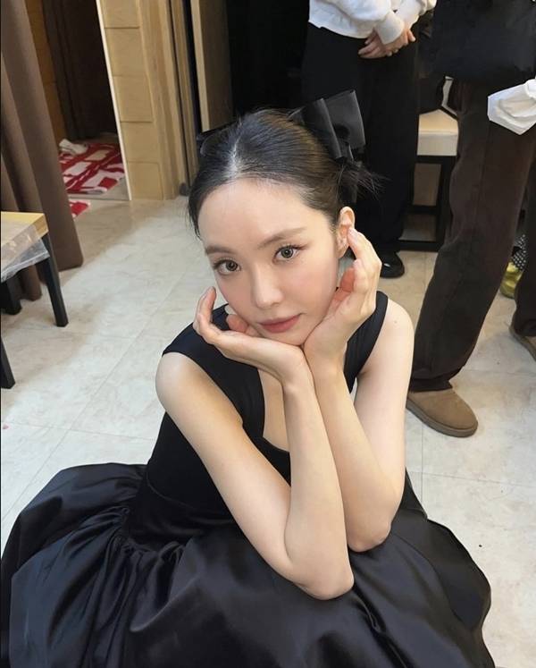 특히 5:5 가르마의 깔끔한 업스타일에 블랙 리본을 매치해 신비롭고 우아한 매력을 배가시켰다. 볼륨감 있는 블랙 드레스는 심플하면서도 고급스러운 스타일링을 완성했다. 또한, 두 손을 턱에 받치고 정면을 응시하는 포즈로 러블리한 분위기까지 더했다.