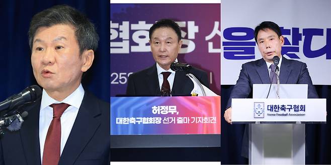 4선 도전에 나선 정몽규 KFA 회장을 비롯해 현 체제에 날을 세우고 있는 신문선 명지대 기록정보과학전문대학원 스포츠기록분석학과 초빙교수와 허정무 전 대전하나시티즌 이사장의 '후보 신분'도 그대로 유지된다.