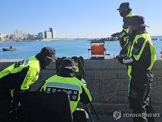 (울산=연합뉴스) 울산 동부소방서와 울산소방본부 특수대응단은 4일부터 6일까지 수중 로봇을 활용한 동계 수난 특별구조훈련을 실시한다고 4일 밝혔다. 사진은 수중 로봇이 촬영하는 바닷속 영상을 실시간 모니터링하는 모습. 2025.2.4 [울산 동부소방서 제공. 재판매 및 DB 금지]