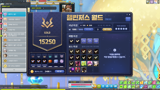 이렇게 즐길 수 있는 이유는 챌린저스 월드의 훌륭한 설계 덕분이다. 체계적인 보상과 각종 코인샵 이벤트 그리고 여유가 될 때마다 PC방 혜택까지 받으니 육성 속도가 상상을 초월했다. 255레벨까지는 오로지 일일 퀘스트로만 육성했다. 이제는 사냥에도 흥미를 느껴 1시간 이상씩 꾸준하게 사냥을 하고 있다.