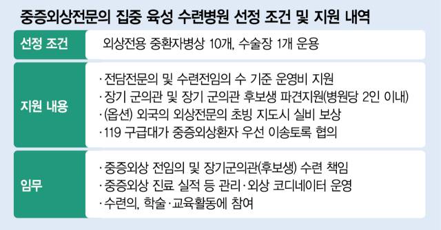 중증외상 전문의는 생명이 경각에 달린 환자들이 119 구급대 등에 의해 권역외상센터로 응급 수송되면 제일 먼저 달려오는 의사들이다. 2011년 소말리아 해적을 퇴치하는 '아덴만 여명 작전'에서 총상을 입은 석해균 선장을 치료해 ‘현실판 백강혁’으로 통하는 이국종 국군대전병원장(당시 아주대병원 권역외상센터장) 같은 의사들이다. 짧은 시간에 환자의 생명과 직결된 치료를 해야하는 만큼 전문성이 어느 분야 보다 중요하다. 정부도 이같은 점을 인식하고 인적자원이 풍부한 서울에 외상전문의 집중수련병원을 지정하고 권역외상센터에 준하는 국고운영비 등을 지원해 왔던 것이다.
