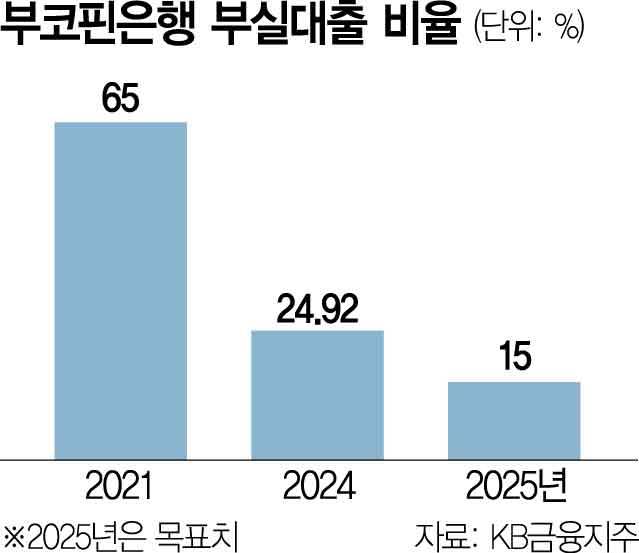 KB금융그룹의 한 관계자는 "부코핀은행의 부실 대출 비율을 2025년까지 15% 수준으로 낮추기 위해 대출 포트폴리오를 재조정하고 있으며 부문별로 차별화된 전략을 통해 자산 건전성을 강화하고 있다"며 "디지털 혁신과 리스크 관리를 기반으로 글로벌 부문의 경쟁력을 높여 나갈 것"이라고 말했다.
