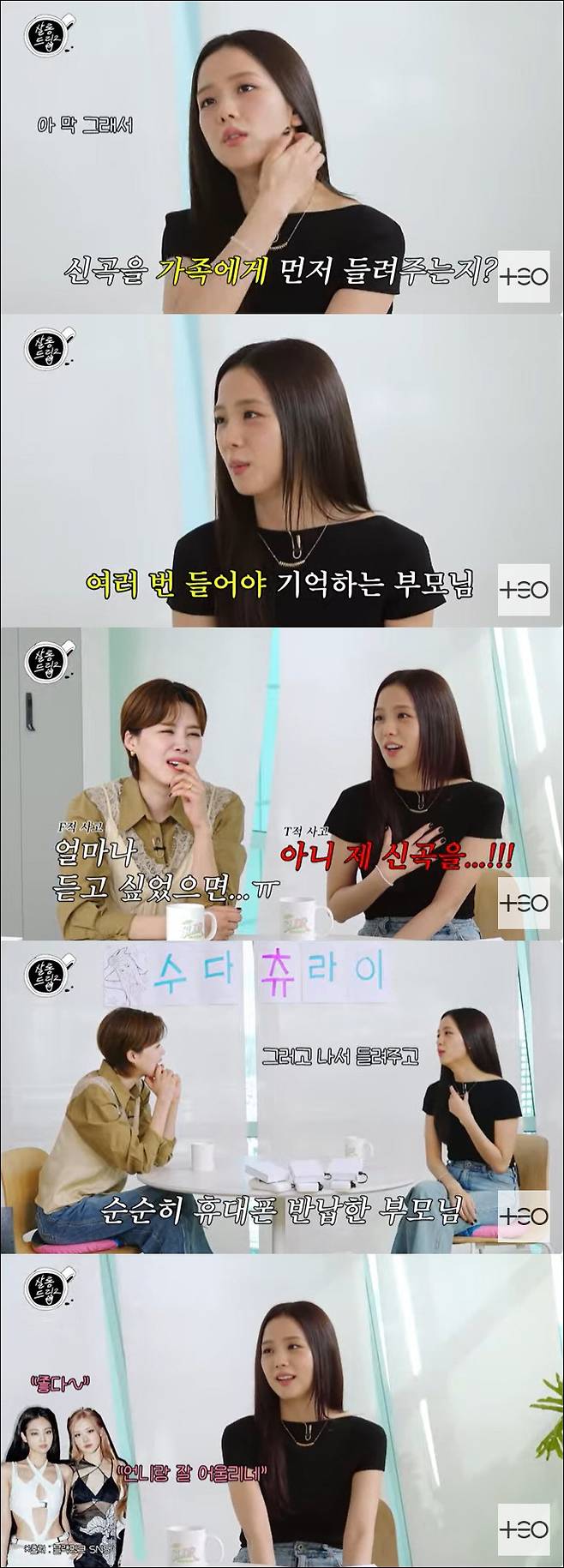 하지만 이번 신곡도 부모님께 미리 들려줬다는 지수. 지수는 "이번에도 듣고 싶은데 말은 못하시더라. 그래서 제가 '한 번 들려주겠다. 대신 핸드폰 줘라' 해서 핸드폰 걷고 들려줬다"고 밝혀 웃음을 자아냈다.