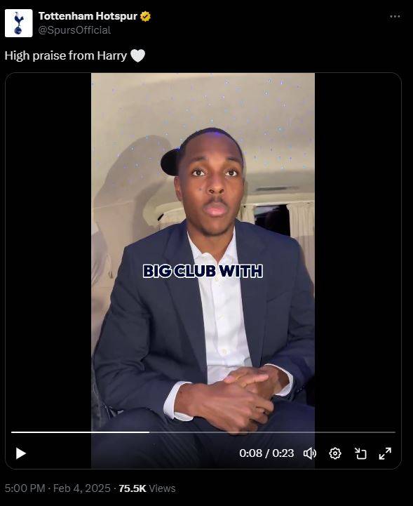 한 팬은 "트로피를 들 수 있을 거라는 얘기는 죽어도 안 하네. 토트넘 구장과 시설에 대한 이야기를 한 것만 보더라도 케인이 왜 토트넘을 떠났는지 알겠다"라며 한탄했다. 또 다른 답글에는 "빅클럽이라고 이야기 해준 것만으로도 오늘 밤 꿀잠을 잘 수 있겠다"라며 재치 있는 글이 담겼다.