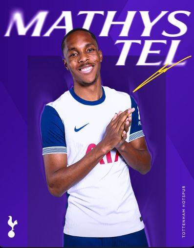 토트넘은 4일(한국시간) 공식 홈페이지를 통해 "마티스 텔이 임대 영입됐다. 프랑스 21세 이하 국가대표 출신 선수인 그는 2024-2025 시즌 종료까지 임대로 합류하며, 다가오는 여름 그를 완전 영입할 수 있는 옵션이 포함됐다. 그는 등번호 11번 셔츠를 입을 예정이다"라고 발표했다.
