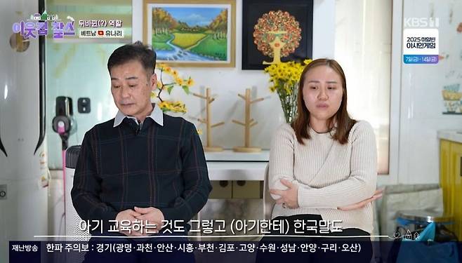4일 방송된 KBS 1TV '이웃집 찰스'에서는 한국생활 11년차 베트남 출신 34세 유나리 씨 가족의 이야기가 공개됐다.