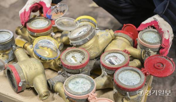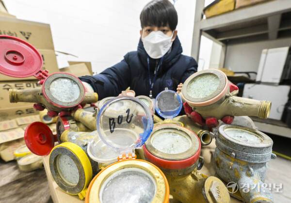 영하 16도 넘는 한파에 동파된 계량기들[포토뉴스]