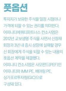 그해 9월 어피니티는 ‘신 회장’과 계약하며 교보생명 지분 24%를 주당 24만5000원(총 1조2000억원)에 사들였다. 3년 안에 기업공개(IPO)를 하지 않으면 매입한 지분을 신 회장에게 되파는 권리(풋옵션)를 행사하는 조항도 함께였다.