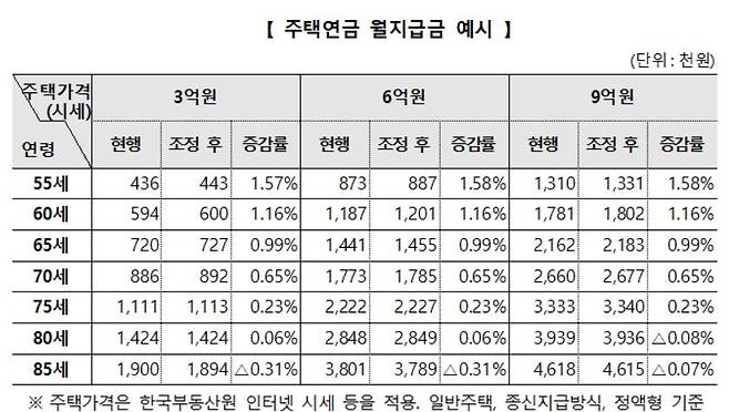 주택연금 신규 신청자 월 지급금 소폭 상향 조정