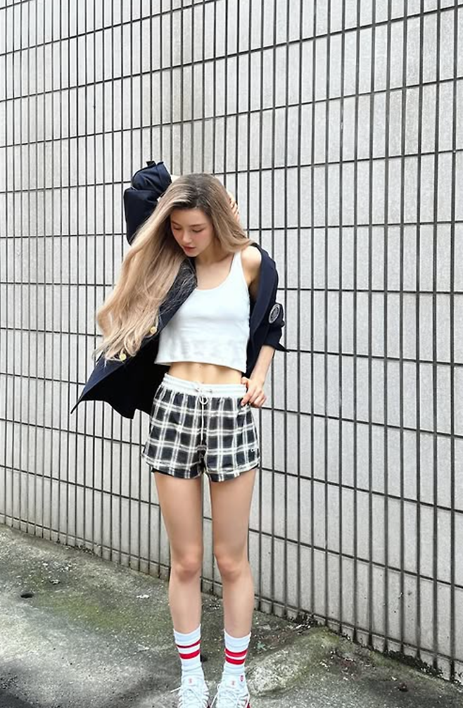 또 다른 사진에서 다니엘은 금발 헤어스타일로 마치 바비인형 같은 자태를 뽐냈다. 기존의 사랑스럽고 귀여운 이미지와는 정반대인 카리스마 있는 모습으로 성숙한 매력을 선보였다. 이어 화이트 탱크톱에 짧은 체크 반바지를 착용한 그는 선명한 복근과 탄탄한 몸매 라인을 드러내며 보는 이들의 감탄을 자아냈다.