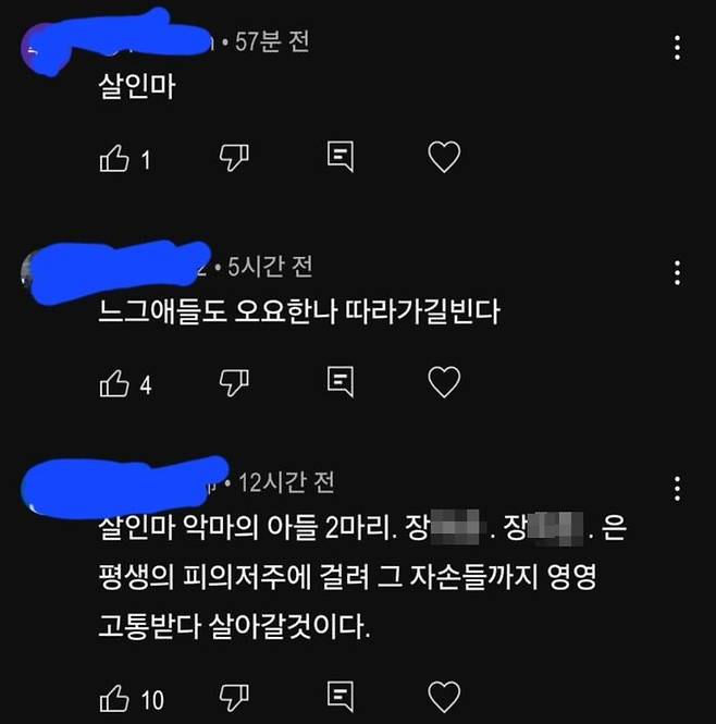 실제로 장성규가 캡처 사진으로 공개한 악플에는 장성규의 자녀들의 이름까지 거론하며 '살인마', '악마'라고 저주하는 글이 담겨 있어 눈살을 찌푸리게 한다.