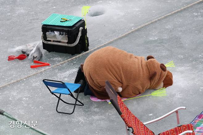 어디 있어?…산천어와 숨바꼭질, 긴 기다림에 ‘얼음 밑이 궁금하네’[금주의 B컷]