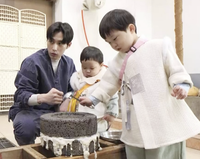 은우와 정우는 전통 복장부터 제대로 차려입고 포스를 풍기는 꼬마 두부 장인으로 변신했다. 은우는 맷돌 돌리기는 물론, 콩물을 휘저으며 "형이 맛있게 만들어줄게. 조금만 기다려"라며 형아미를 자랑했다. 또한 몽글몽글한 콩물을 바라보며 "솜사탕같이 생겼어"라며 풍부한 상상력을 뽐냈다.