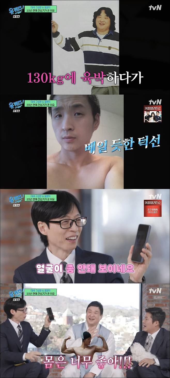 '유퀴즈' 구성환이 38kg 감량에 성공했을 때를 보여줬다.