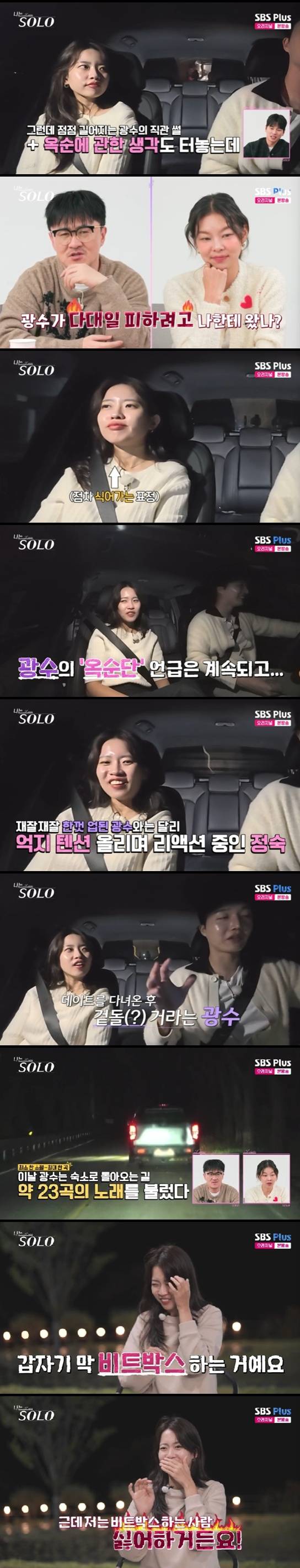 광수의 토크로 채워진 데이트에 정숙은 리액션 로봇이 됐다.
