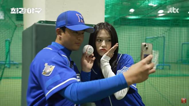 지난 5일 JTBC 유튜브 채널 'JTBC Entertainment'에 '[미공개] 코칭하러 갔다가 다이브(아이브 팬)가 돼…영건즈도 아재들도 신난 아이브 안유진X리즈 시구·시타 연습 | 〈최강야구〉 비하인드' 영상이 올라왔다. 안유진과 리즈는 '최강야구' 마지막 직관 경기의 시구와 시타를 하기 위해 잠실 야구장을 찾았다.