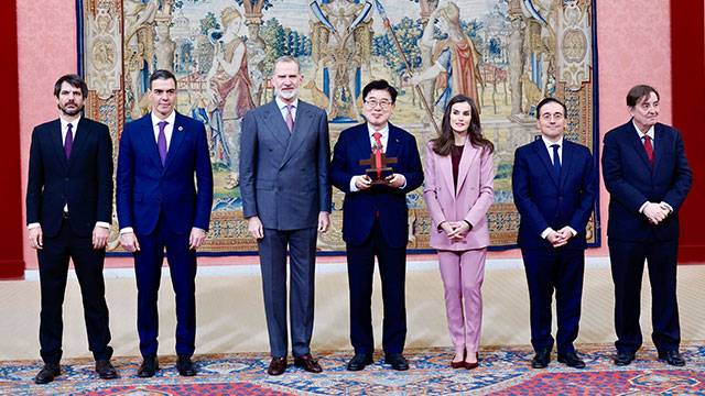 박철 전 한국외국어대학교 총장이 현지 시각 5일 스페인 마드리드 아란후에스 왕궁에서 펠리페 6세 스페인 국왕으로부터 아시아 학자 최초로 스페인 ‘에녜상’을 수상했습니다.