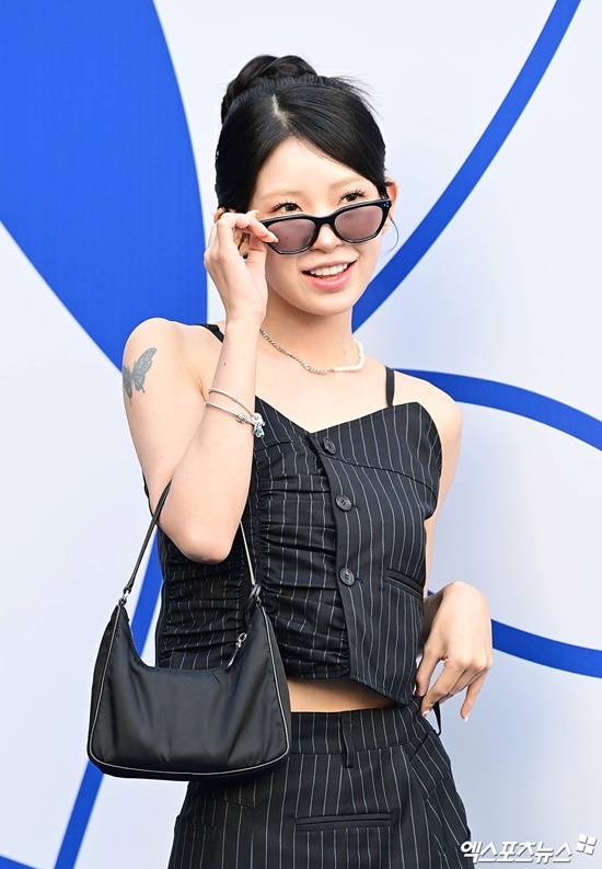 스트라이프 무늬가 돋보이는 시크한 블랙 패션에 미니백을 매치한 뒤 선글라스를 착용해 분위기를 더한 최준희는 여유로운 포즈와 표정으로 포토월의 분위기를 사로잡았다.
