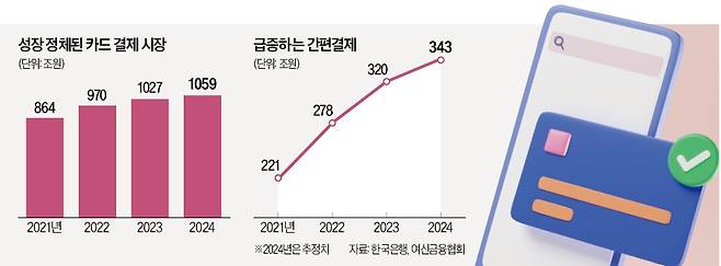 카드업계에서 애플페이발(發) 간편결제 수수료 폭탄이 현실화할 것이란 위기감이 커지고 있다. 각 카드사가 높은 수수료 부담에도 애플페이 도입을 추진하면서 삼성페이는 물론 네이버페이, 카카오페이 등 다른 간편결제사까지 수수료 부과 카드를 꺼내 들 것이란 우려에서다. 간편결제가 전면 유료화될 경우 신용카드사가 부담해야 할 추가 비용은 향후 5년간 3조원에 달할 것으로 예상된다.