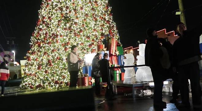 케빈오는 공효진이 대형 크리스마스트리 앞에서 포즈를 취하자 사진을 찍어줬다.