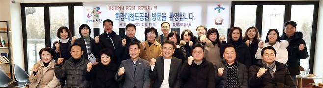 서울 노원구(구청장 오승록)는 6일 오후 김영길 울산 중구청장과 박경흠 중구의회 의장을 비롯한 울산 중구청 관계자 27명이 벤치마킹을 위해 화랑대철도공원(노원기차마을, 기차카페, 화랑대 역사관)을 방문했다고 밝혔다.
